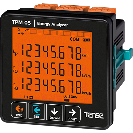 3-phase network parameter analyzer - three-phase digital multi-function panel meter, current, voltage, frequency and total power indicator, two relay outputs and digital input, RS485 ModBus RTU - TPM-05 manufacturer TENSE (Turkey) panel meters.