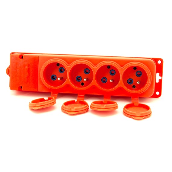 High-quality orange 4 x "rubber" hermetic quadruple socket, protection IP44 (with flap ), grounding standard E (pin), 16 amps 250 volts, manufacturer Bylion.