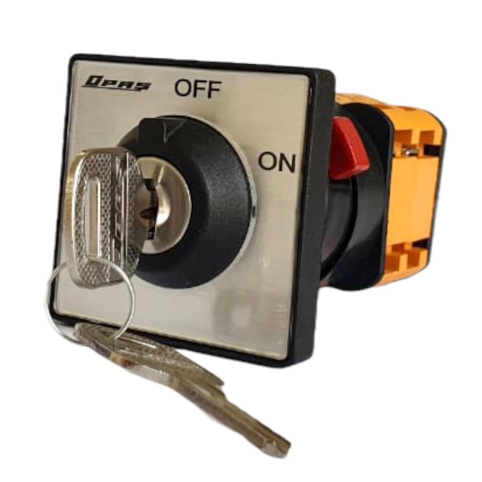 Key-operated rotary switch 0-1 ON/OFF with lock.