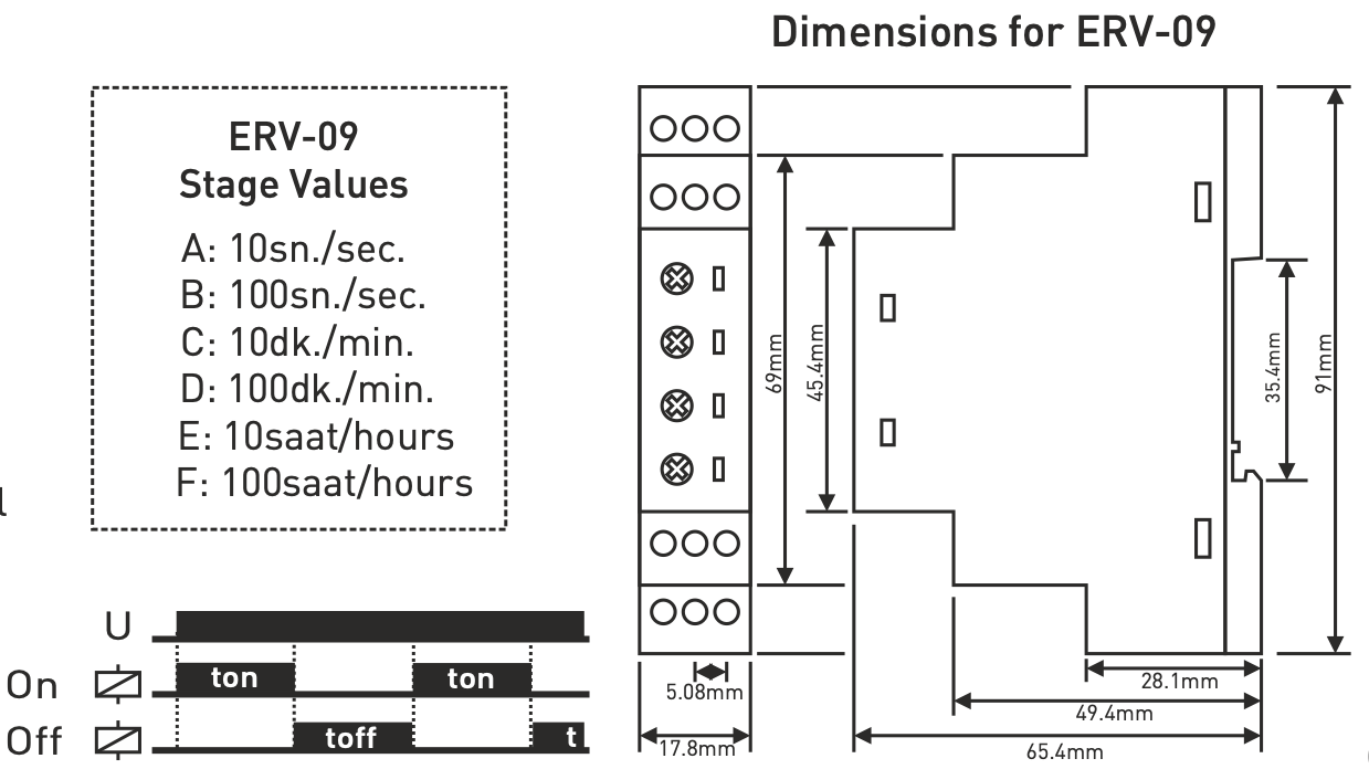 - Time relay - a cyclic device with an independently adjustable output on and off time.