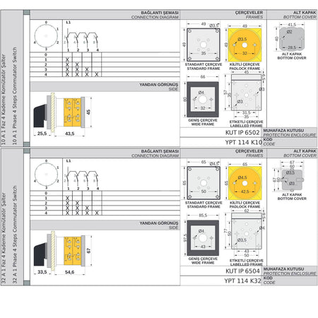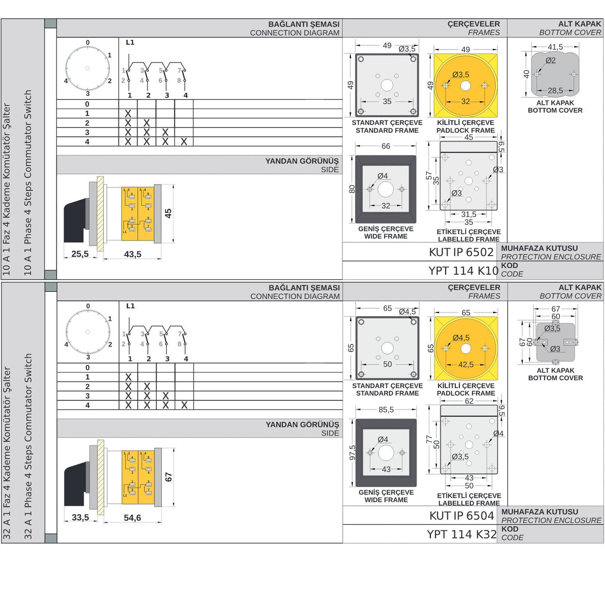 0-1-2-3-4 rotary cam package group step/step commutator switch, YPT114K, manufactured by OPAŞ (Turkey)