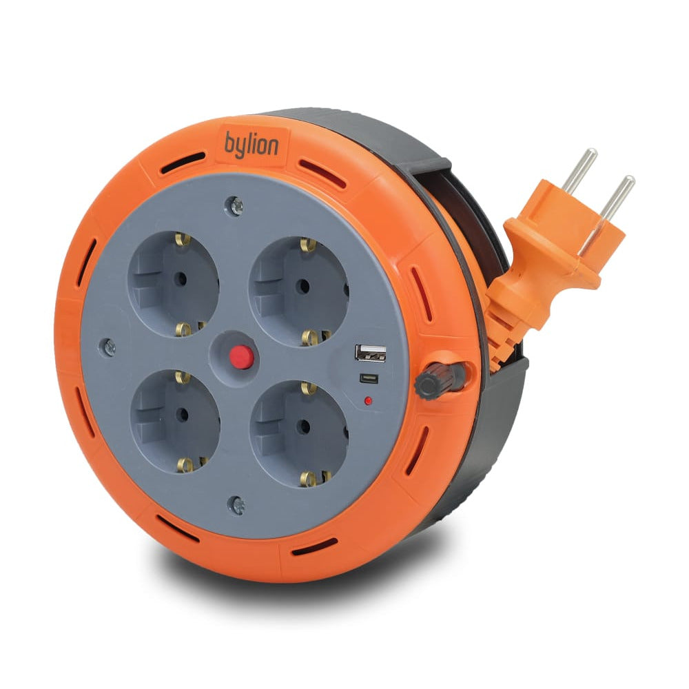 This model has four sockets and a robust H05VV-F cable with a cross-section of 3G1.00mm² and a length of 5 meters, which ensures sufficient reach for various applications. The orange color of the cable increases its visibility, which increases safety in use. With this reel, you ensure easy and quick switching on and off of devices and eliminate cable clutter, and thanks to the USB connectors, you can charge a smartphone or other electronic devices without a charger.