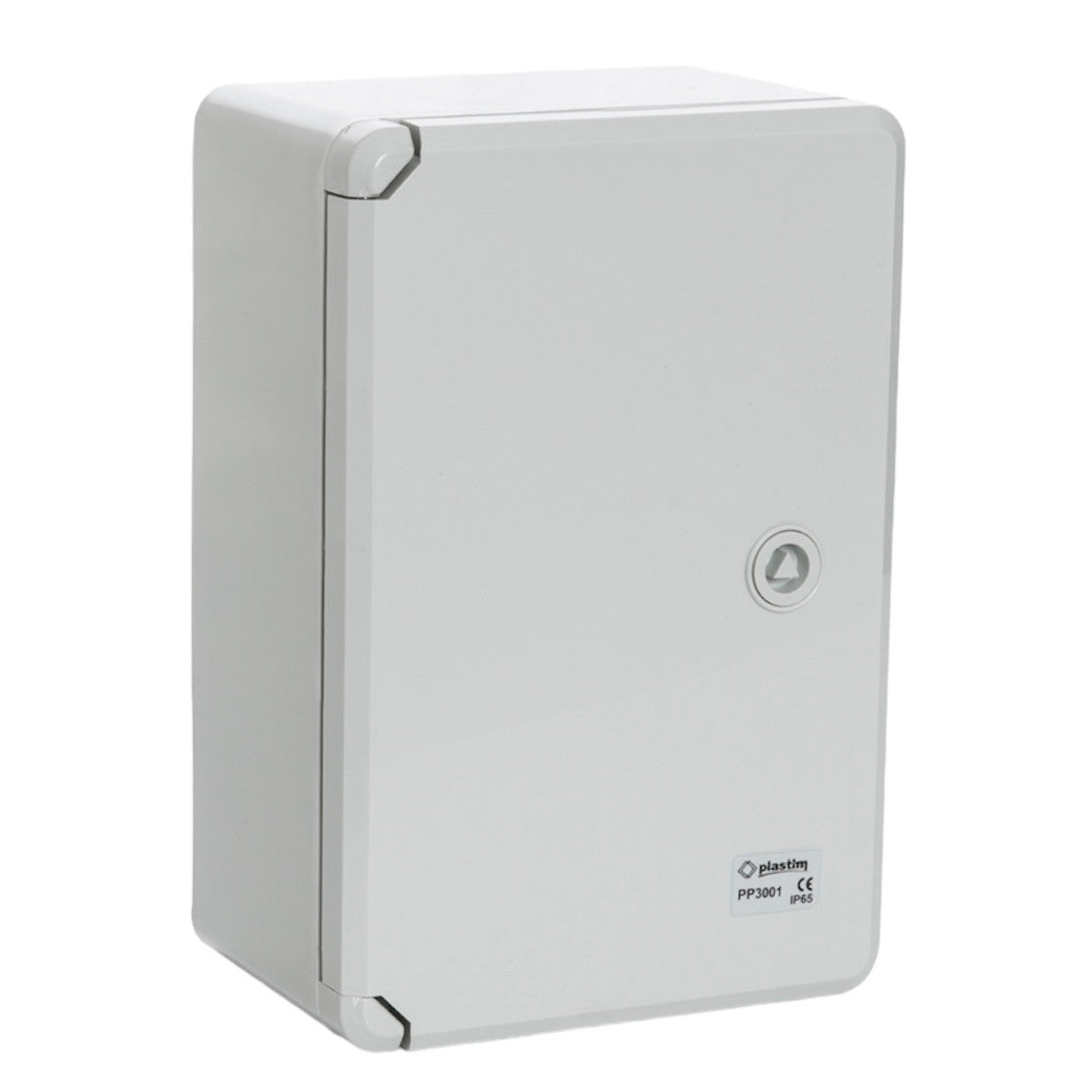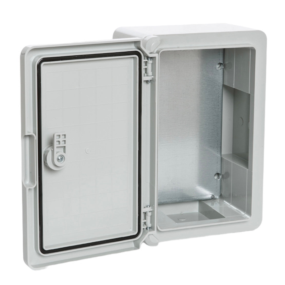 Plastic switchboard, grey door, incl. mounting plate, RAL7035, IP65.