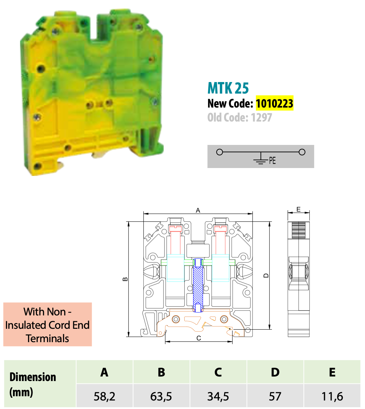 Maximum cross-section of a single conductor to be connected: 25mm2