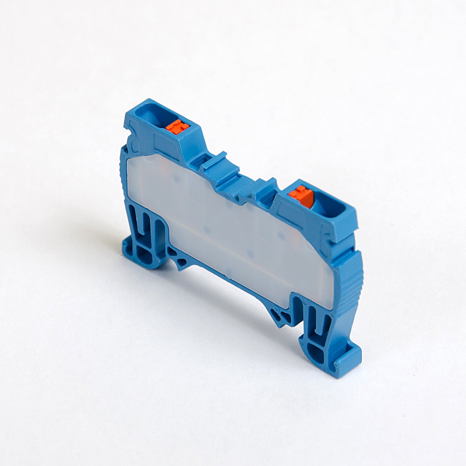 Spring rail connector / DIN rail connector 2-wire, retractable contact, blue, ONKA, made in Turkey.