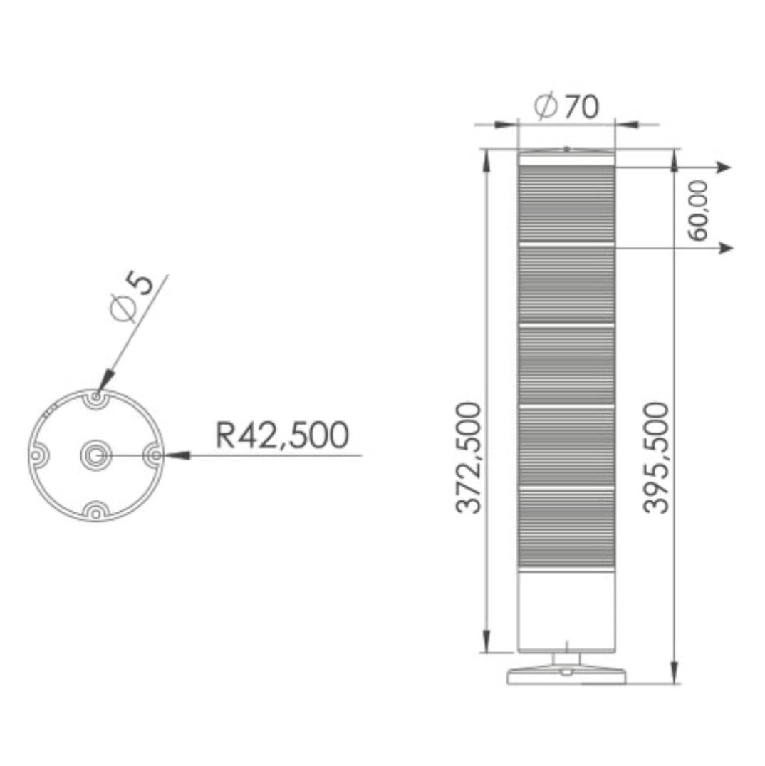 Five-tier signal pole with surface mounting and 10 cm pipe